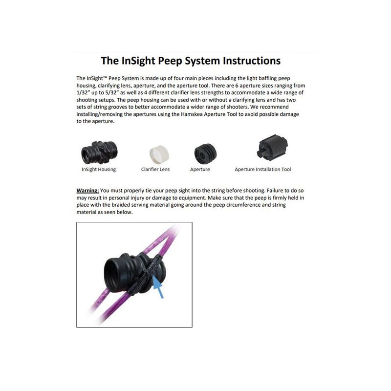 With the InSight™ Peep Apertures there is no need to switch out your peep when all you need to do is change your aperture size. Our polymer construction ensures the aperture will neither bind in the peep housing nor scratch the clarifying lens or housing. The polymer material also prevents the aperture from being scratched or marred by tools during installation. Aperture sizes include 1/32”, 3/64”, 1/16”, 3/32”, 1/8”, and 5/32”.