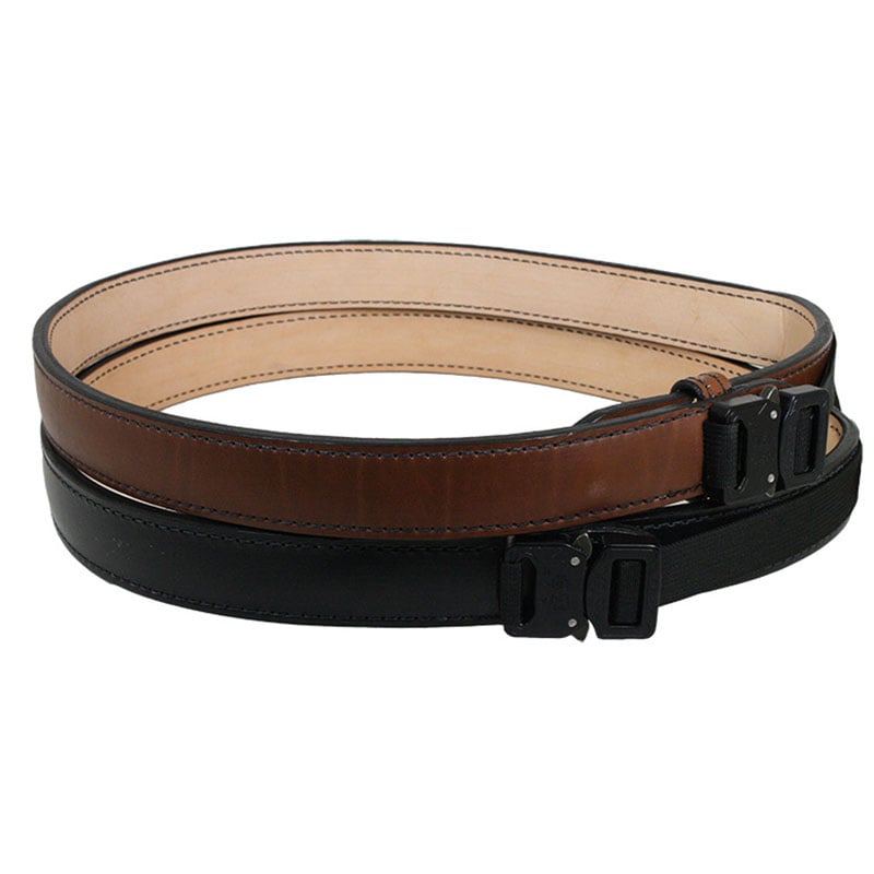 The MGL “Barbarian” Belt is “Where Old Meets New”. The “Barbarian” Belt combines Leather with a Cobra Buckle. MGL takes the modern tactical belt and adds a style and strength to your EDC Belt, whether you are carrying IWB or OWB.The “Barbarian” Belt Constructed of 2 layers “Top Grain” leather for strength and finish. Sewn together with 277 Bonded threads. 1” webbing throughout the length of the belt to provide minimal stretching. 3/4? wide integrated leather belt loop sewn onto belt, as well as an internal belt loop for the tail of the 1” webbing All belts come with Black webbing and Cobra Buckles.**Sizing is determined by size of pants you wear. We take in consideration of added lengths to assure proper fit. For best results in sizing, determine your pants waist size from a new pair of blue jeans as they are more accurate. If you IWB, please get sized accordingly. Waistbands of worn pants tend to stretch.**