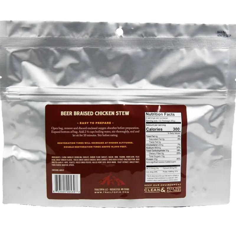 We partnered with our fellow adventurists at Bent Paddle Brewing Co. from Duluth, Minn. to create a unique Beer Braised Chicken Stew using their ESB Ale and malt. This stew includes premium elbow noodles, tomato flakes, chicken, carrot, potato, hemp seed, onion, malt, beer extract and a homemade seasoning blend.