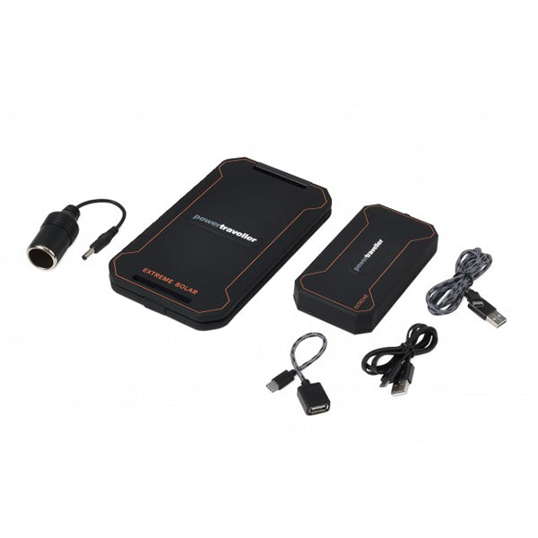 The new extreme paves the way for battery and solar combination chargers.Underneath the tough, rugged, waterproof casing of the extreme unit lies a massive 12,000mAh lithium battery - providing a hefty amount of power for users when they need it most.Unlike most portable chargers, the extreme features both a 12V DC output - suitable for charging bigger devices such as SLR cameras and tablets, a 5V 2A USB output for smaller devices such as smartphones and GPS systems PLUS a bi-directional USB-C socket - meaning you can charge the very latest devices utilising USB-C charging.These charging options make the extreme a front-runner in portable power technology and capability and give users the freedom to roam wild.The kit includes a 5 watt solar panel which outputs 5V 1A via USB and opens to 210 degrees - perfect for fitting to a back pack or tent. The solar panel features MPPT technology which gives optimum charging in low light conditions and will not stop charging should a cloud pass over the panels.Housed in a rugged, waterproof casing designed to withstand knocks and spills, the extreme is an essential item in your kit bag.Works With