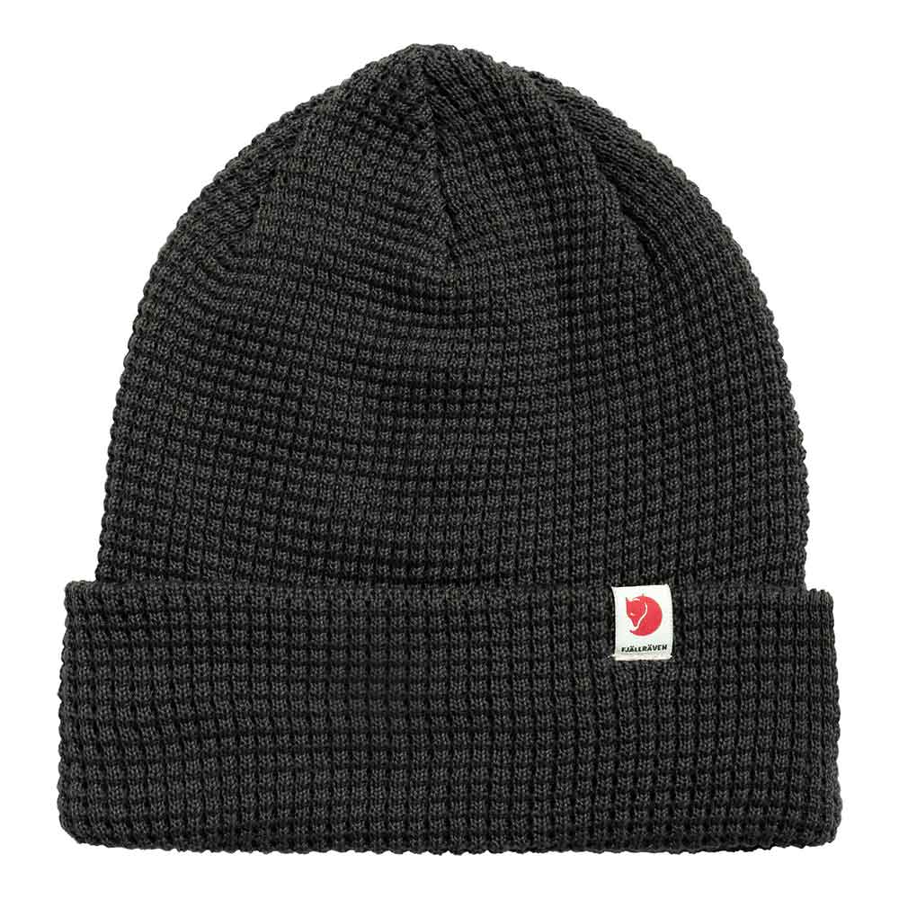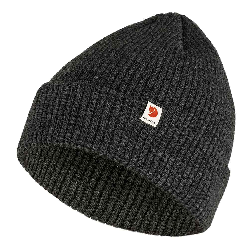 The Fjallraven Tab Hat is a soft, comfortable knitted hat in recycled polyester. Decorative waffle-knit with wide fold-up edge and little textile logo tab. The material wicks away moisture and dries fast, so it works well for both everyday life and when out in the mountains.
