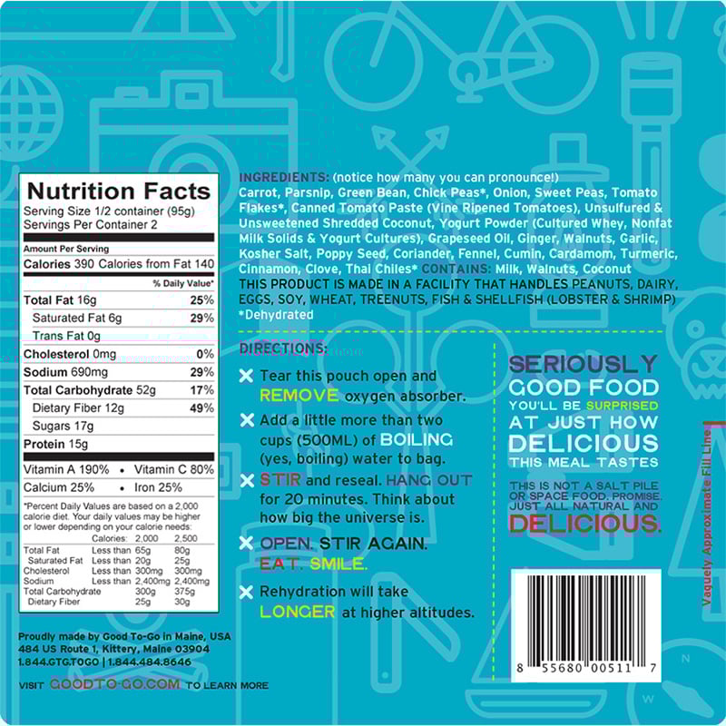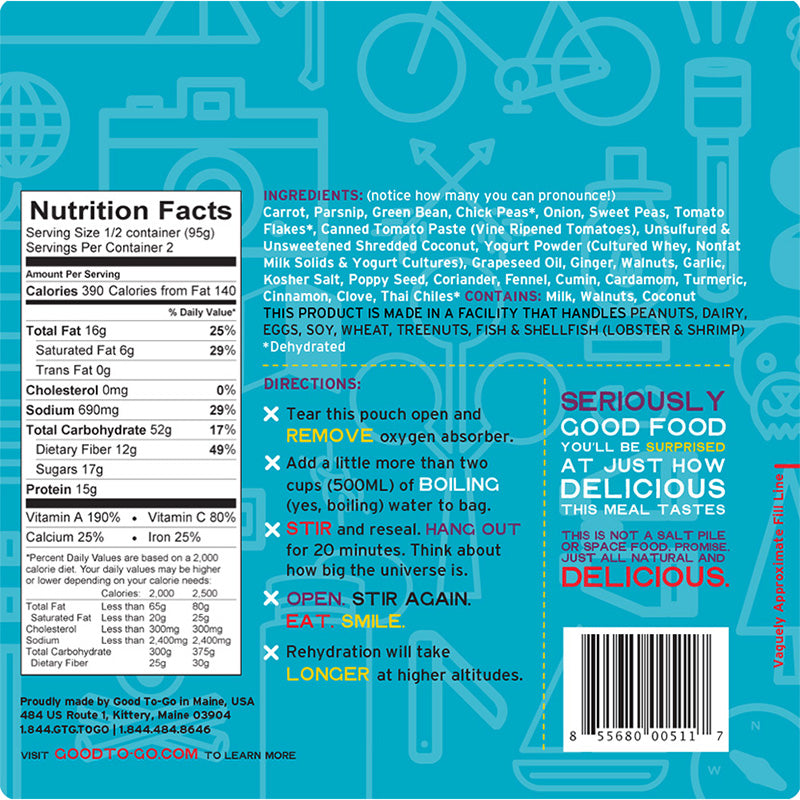 Good To Go Indian Vegetable Korma-1 Serving - Extreme Outfitters