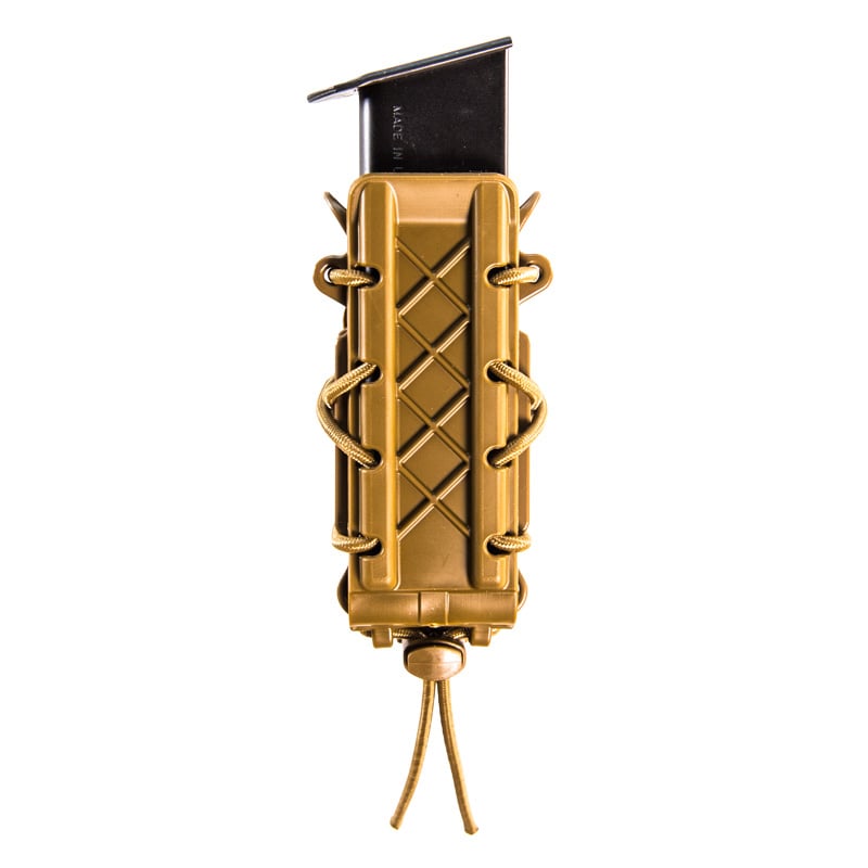 Our line of polymer TACOs® function much the same as their nylon counterparts. The body and brackets are made with our durable and flexible, proprietary polymer and are laced together with bungee cord for the same versatility our customers have come to expect from the TACO® brand. As with the originals, these pouches grip and retain a wide variety of pistol magazine styles, calibers and small tools, like knives, multitools and flashlights.