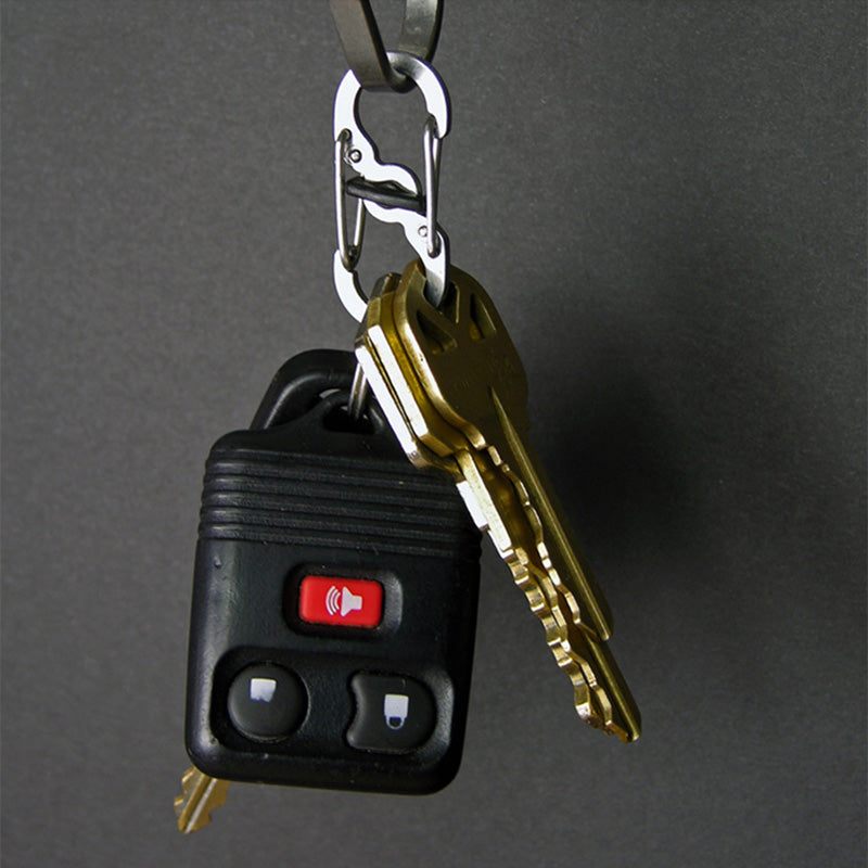 This micro-sized stainless steel S-Biner features a center locking lever to securely lock its gates and effectively hold your keys in place.