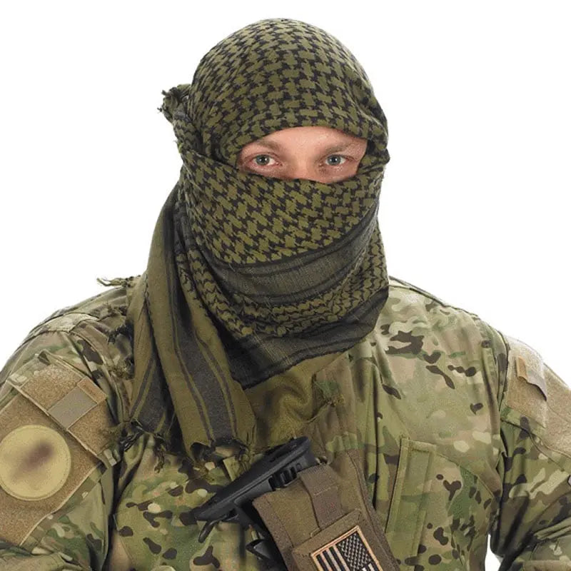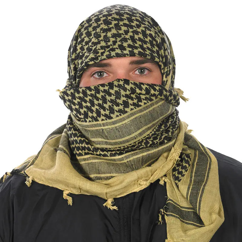 Methods of wearing the shemagh vary, but wrapping the scarf around the head and face provides optimal protection from the elements.
