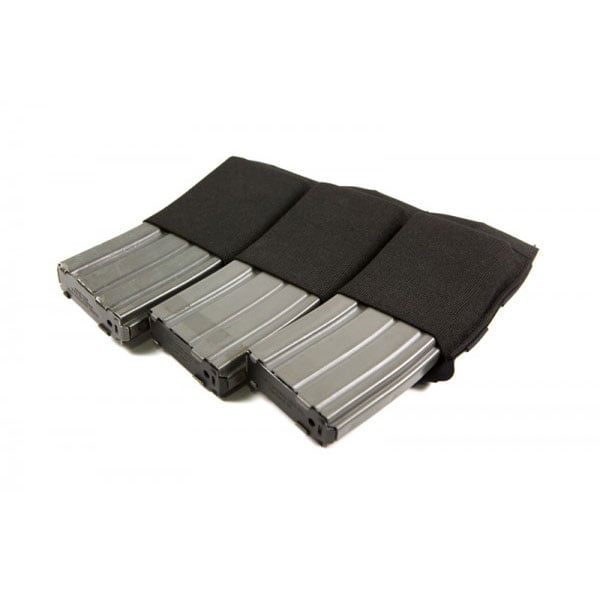 NSN: 8465-01-612-3165The Ten-Speed Triple M4 Mag Pouch holds three M4 magazines and is the perfect blend of speed and security. Ten-Speed® pouches use military grade elastic combined with ULTRAcomp™ laminate to create a multi-use pouch that weighs almost nothing and lays flat when not in use.The Triple M4 Mag Pouch holds three M4 magazines (polymer or metal), medical supplies, bandages, flash bangs, or other similar sized items.The Patented Helium Whisper® attachment system is compatible with all MOLLE platforms and built with a combat tested, high performance laminate that reduces weight up to 60% while equaling or exceeding the durability of 1000D CORDURA®.The latest material innovation of the Ten-Speed® pouches have been modified for optimized retention and greater durability.As with all Blue Force Gear, it is made with excellence in the USA and carries a limited lifetime warranty.***Mags and other items not included***