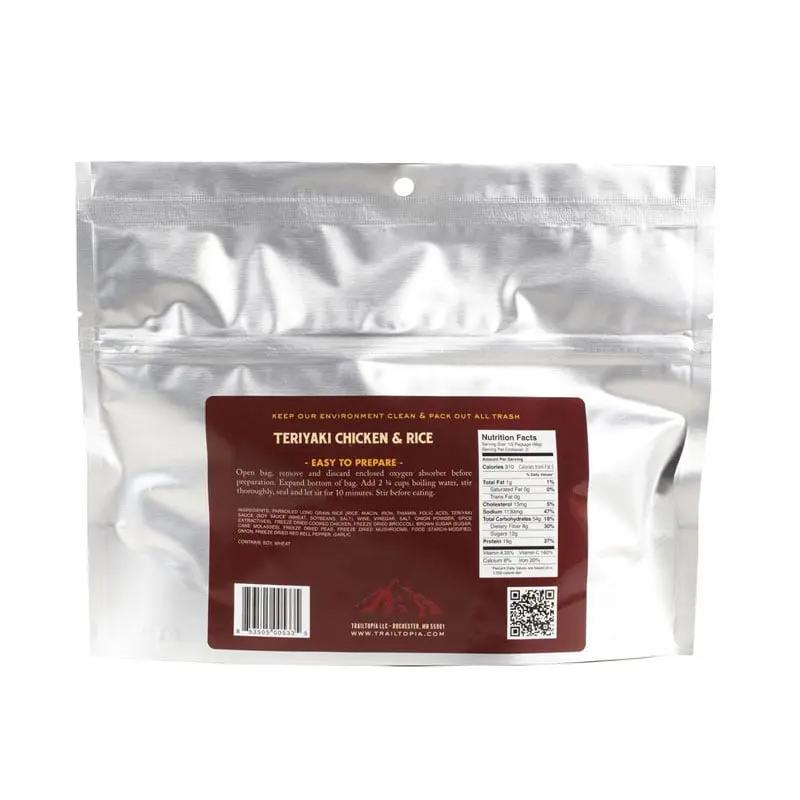 INGREDIENTS: PARBOILED LONG GRAIN RICE (RICE, NIACIN, IRON, THIAMIN, FOLIC ACID), TERIYAKI SAUCE (SOY SAUCE (WHEAT, SOYBEANS, SALT), WINE, VINEGAR, SALT, ONION POWDER, SPICE EXTRACTIVES), FREEZE DRIED COOKED CHICKEN, FREEZE DRIED BROCCOLI, BROWN SUGAR (SUGAR, CANE MOLASSES), FREEZE DRIED PEAS, FREEZE DRIED MUSHROOMS, FOOD STARCH-MODIFIED, ONION, FREEZE DRIED RED BELL PEPPER, GARLIC
